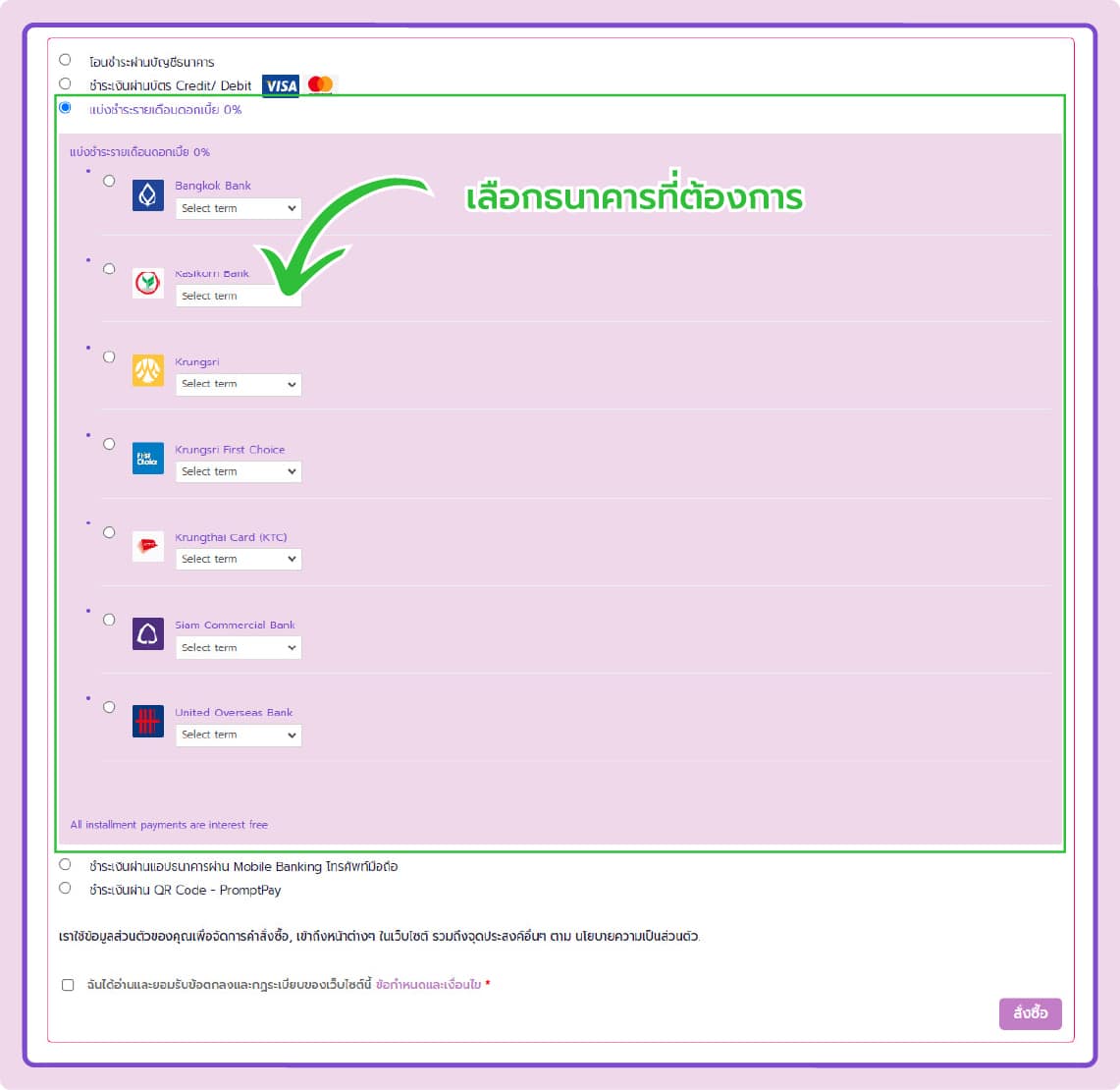 5.2 เลือกรูปแบบกรแบ่งชำระที่ต้องการแล้วกดปุ่ม ” สั่งซื้อ “ ระบบจะพาท่านสู่การดำเนินการในขั้นตอนถัดไป