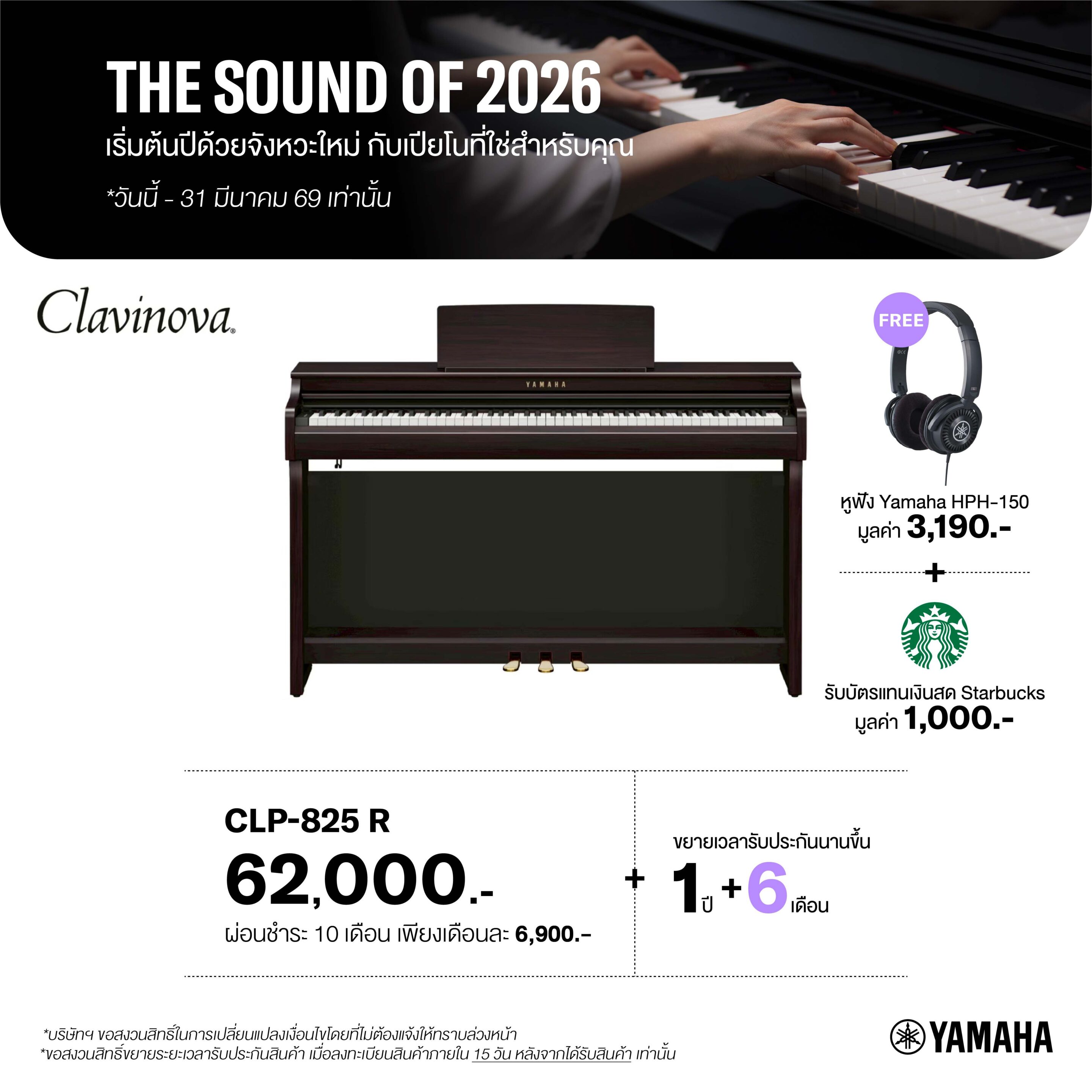 • สินค้ารับประกันโดย บริษัท สยามดนตรียามาฮ่า จำกัด