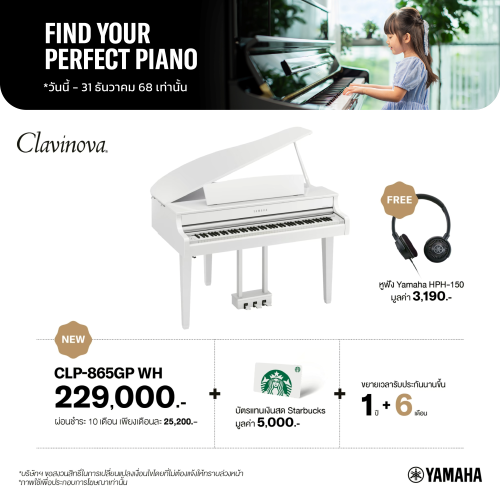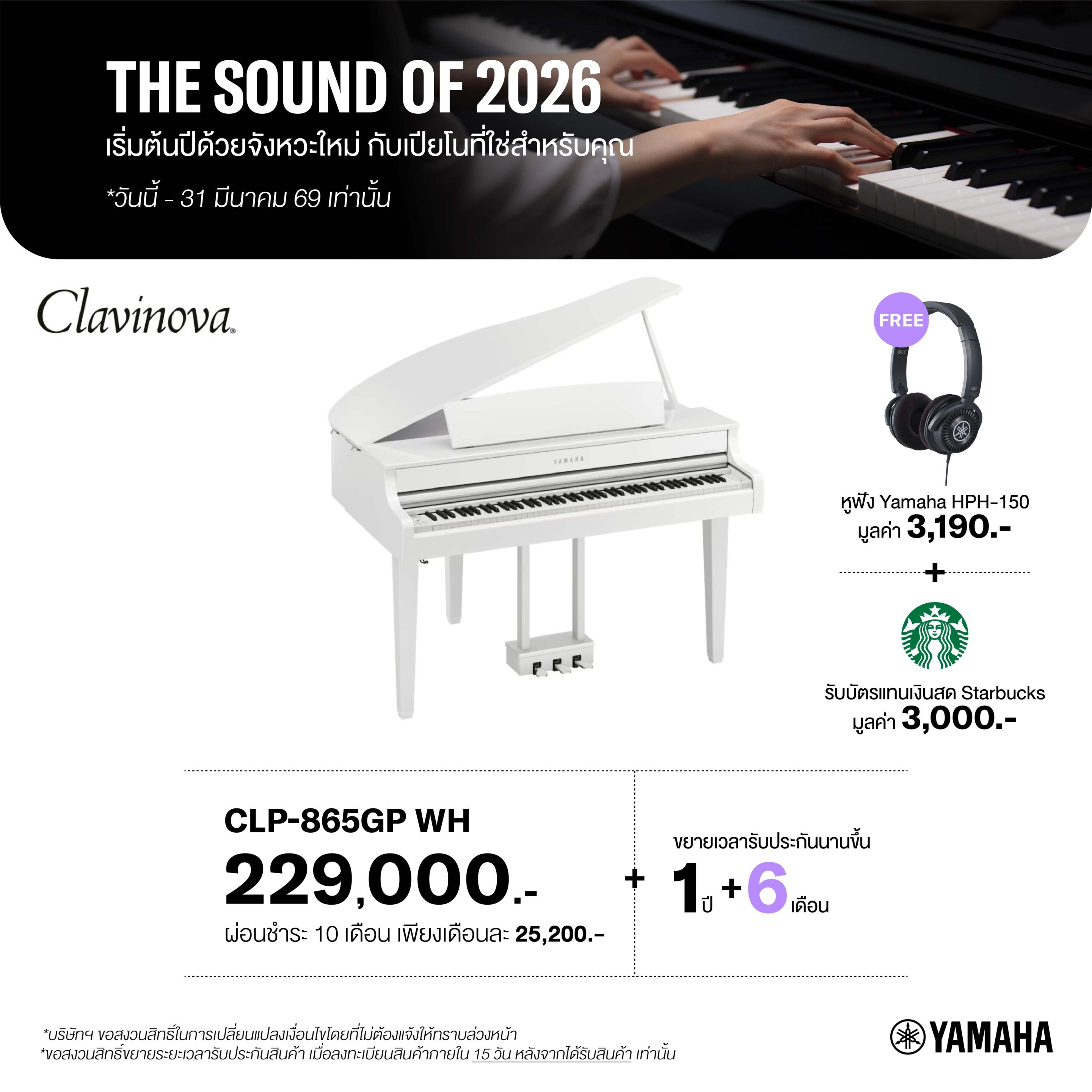 Yamaha CLP-865GP ใน Clavinova CLP ซีรีส์ ต้องการถ่ายทอดความรู้สึกและประสบการณ์ของการเล่นเปียโนแกรนด์อะคูสติกด้วยเครื่องดนตรีดิจิตอลโดยการผสานเทคโนโลยีดิจิตอลใหม่ล่าสุดเข้ากับการผลิตเปียโนอะคูสติกแบบทำมือที่สั่งสมมากว่า 120 ปี