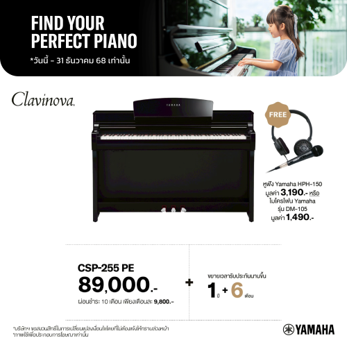 เปียโนไฟฟ้า CSP-255 แม้แต่ผู้ที่เพิ่งหัดเล่นก็สามารถเล่นเพลงโปรดกับเปียโนดิจิตอล Clavinova CSP-200 ซีรีส์ ได้ง่าย มีฟังก์ชันไฟสตรีม (Stream Light) ซึ่งเป็นแนวทางให้คุณกดแป้นคีย์ที่จะเล่นในลำดับต่อไปและแอป Smart Pianist ที่ให้คุณเพลิดเพลินกับเครื่องดนตรีและอุปกรณ์สมาร์ทของคุณ ด้วยสัมผัสในการเล่นที่สมจริงและคุณภาพของโทนเสียงที่เต็มอิ่มแบบเดียวกับเปียโนแกรนด์ ทำให้คุณสนุกเพลิดเพลินกับการเล่นได้เต็มที่