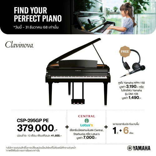 Clavinova CSP-295GP มอบความสามารถที่เหนือกว่าสำหรับการแสดงออกทางดนตรี ด้วยเสียงเครื่องดนตรีที่หลากหลายซึ่งตรงกันข้ามกับรูปลักษณ์ภายนอกที่สง่างาม เรียบง่าย CSP ซีรีส์ ที่มาพร้อมเสียงแบ็คอัพที่หลากหลายจะช่วยให้คุณเพลิดเพลินไปกับการแสดงที่ให้เสียงอันยอดเยี่ยมกับเสียงดนตรีประกอบที่สมจริงซึ่งจะช่วยยกระดับการแสดงของคุณผ่านแนวเพลงที่หลากหลาย