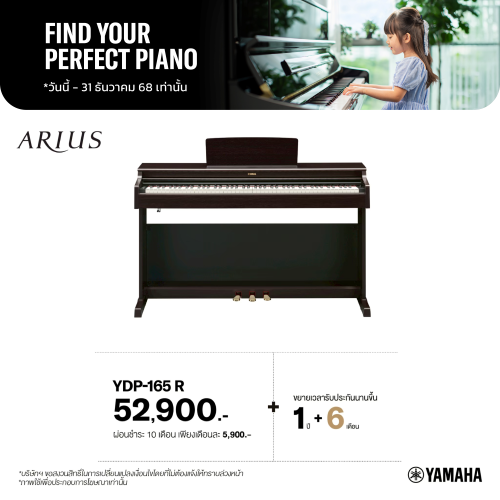YDP-165R จะมีเสียงเปียโนตัวอย่างจากเปียโนแกรนด์คอนเสิร์ต CFX รุ่นขายดีของ Yamaha ซึ่งมีชื่อเสียงในด้านการถ่ายทอดเสียงสูงและเสียงเบสที่กังวานและทรงพลังซึ่งกันเป็นเสียงที่สื่ออารมณ์ได้อย่างยอดเยี่ยม YDP-165R มีเสียงที่ให้รายละเอียดแบบเดียวกันตั้งแต่โน้ตเสียงต่ำไปจนถึงโน้ตเสียงสูง ให้การสื่อความหมายที่กลมกลืนเต็มไปด้วยความคมชัดและสมบูรณ์ มอบพลังและรายละเอียดในการถ่ายทอดอารมณ์ที่น่าประทับใจอย่างเหนือชั้น ตอบสนองการฝึกฝนประจำวันของคุณได้อย่างแท้จริง รวมถึงการแสดงที่เต็มไปด้วยอารมณ์ของคุณ