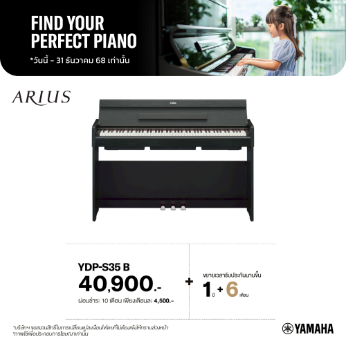 แม้ YDP-S35B จะมีเสียงเปียโนแกรนด์คอนเสิร์ตที่สมจริง แต่ก็ยังมีเสียงเครื่องดนตรีอื่นๆ ติดตั้งมาในเครื่องด้วย รวมทั้งหมด 10 เสียง ได้แก่ เปียโนไฟฟ้า ออร์แกน ไวบราโฟน และเครื่องสายต่างๆ YDP-S35B ยังมีบทเพลงมาให้ 353 เพลง ประกอบด้วยเพลงคลาสสิกที่มีชื่อเสียง 50 เพลง และแบบฝึกหัดเปียโนที่ครอบคลุมการเล่นแบบต่างๆ เช่น Beyer, Burgmüller, Czerny และ Hanon อีก 303 เพลง เครื่องนี้ยังรองรับแอป Smart Pianist ของ Yamaha ซึ่งสามารถดาวน์โหลดแอปได้ฟรีลงในอุปกรณ์สมาร์ทของคุณและเชื่อมต่อเข้ากับเครื่องดนตรี* คุณสามารถใช้งานฟังก์ชันเสียงต่างๆ ของเครื่องดนตรีได้ด้วยแอป Smart Pianist และเรียกดูโน้ตของเพลงในตัวเครื่องได้ นอกจากนี้ ยังมีฟังก์ชัน Piano Room ที่ครอบคลุมสำหรับเปลี่ยนคุณภาพของโทนเสียงและการตั้งค่าความก้องกังวานของเสียงเปียโน