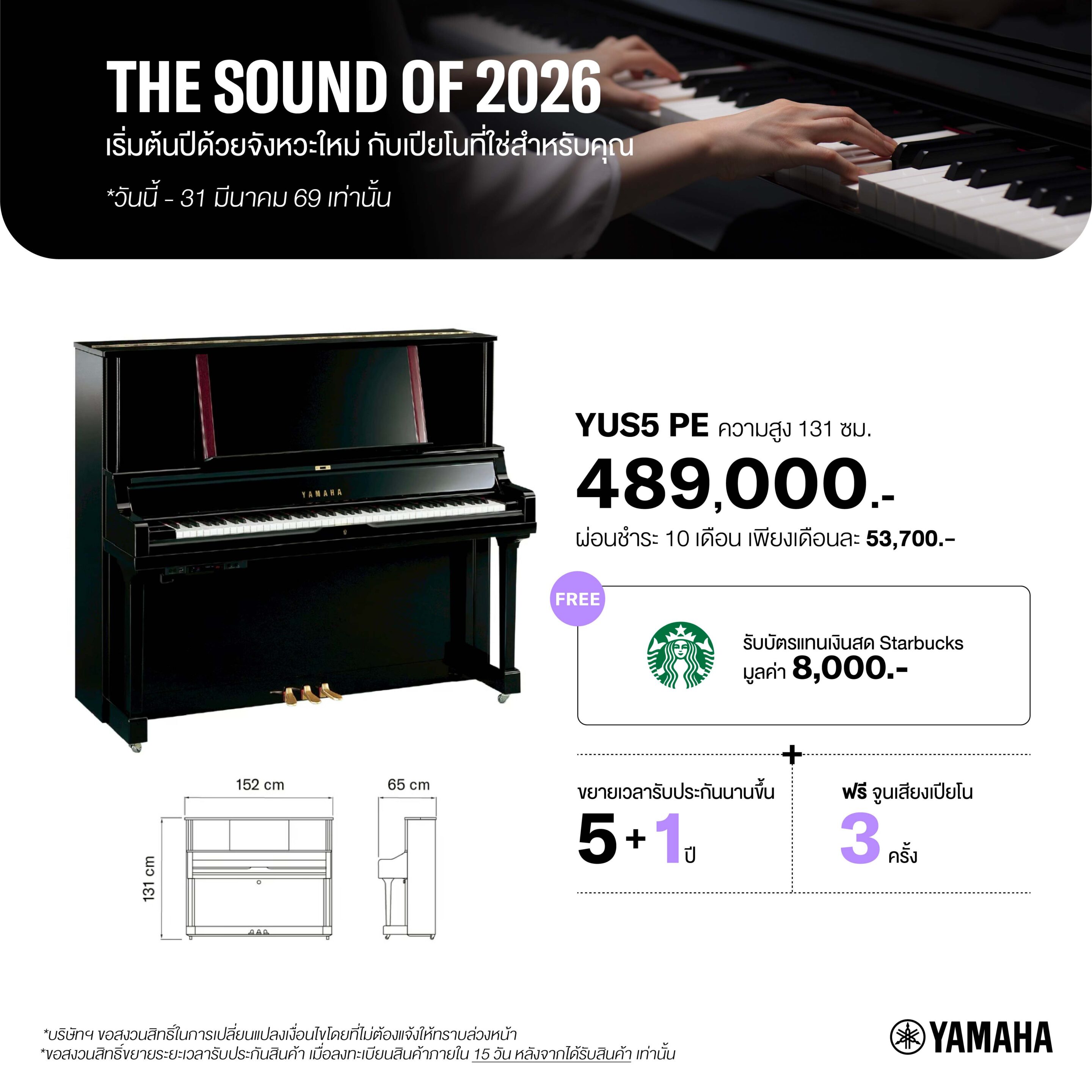 • สินค้ารับประกันโดย บริษัท สยามดนตรียามาฮ่า จำกัด